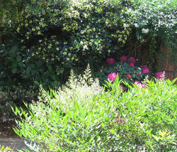 El jardín sur es parte del conjunto de pequeños sectores exteriores de esta propiedad; la presencia de árboles crecidos y construcciones vecinas afecta su grado de luminosidad generando al mismo tiempo diferentes climas. El protagonista es un exclusivo rododendro; los deseos de la dueña de casa de cultivar este ejemplar sureño en clima de Santiago y en el reducido espacio de este jardín, conlleva labores de manejo permanentes, referidas a mantener un clima con luz tamizada, condiciones hídricas adecuadas y fertilizaciones periódicas.